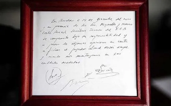 FC 바르셀로나와 맺은 냅킨 계약서