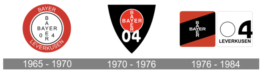 1965년의 변형에서는 엠블럼의 삼각형 모양을 원형으로 변경했으며, 흰색 메달과 검은색 비문이 두꺼운 빨간색 프레임으로 둘러싸여 있습니다. 프레임에는 테두리 주변에 흰색 산세리프 대문자로 쓰인 흰색 "바이엘 레버쿠젠" 문구가 있습니다. "04"는 바이엘 크로스의 수직 "바이엘"에서 측면에 검은색으로 다시 작성되었습니다. 1970년에 클럽은 상징을 다시 변경하여 친숙한 검은색과 빨간색 팔레트를 다시 가져오고 전통적인 바이엘 크로스를 중심 요소로 유지했습니다. 평범한 검은색 바탕에 중앙에 빨간색 원이 있는 고전적인 문장이었습니다. 바이엘 엠블럼 타입은 얇은 흰색 윤곽선과 균형을 이루는 원 위에 흰색으로 작성되었습니다. 굵은 둥근 선으로 된 대담하고 확대된 "04"는 문장 하단에 원과 약간 겹치도록 설정되었으며 클럽 창립 연도인 1904년을 기념했습니다.