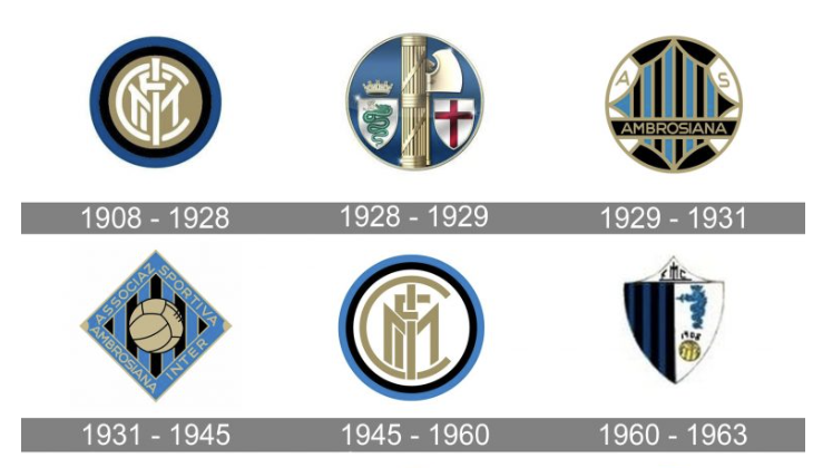 인터 밀란의 초기 엠블럼은 1908년에 도입되었는데 차분한 금색 바탕에 검은색과 파란색의 두 배 두께의 윤곽선이 있는 원형 메달이 있습니다. 골드 바탕에 화이트 컬러로 스타일리시하고 강렬한 'IMFC' 모노그램을 그려 넣었습니다. 글자 "F"와 "M"은 엠블럼 테두리의 윤곽을 반복하는 확대된 "C" 안에 겹쳐 배치되었습니다. 인터(Inter)를 뜻하는 아이(I)는 모노그램을 뚫고 나온 듯한 F의 가로 막대가 얽혀 있습니다. 1928년 변형에서는 디자인에 대한 접근 방식이 달라졌습니다. 새로운 엠블럼에는 넓은 금색 기둥으로 수직으로 나누어진 원형 배지가 특징이었습니다. 왼쪽에는 녹색 뱀과 은색 왕관이 있는 작은 문장이 있었고 오른쪽에는 날카롭게 빛나는 도끼와 적십자가 있는 문장이 있었습니다. 이는 밀라노의 문장학적 상징으로 구성된 배지였으며, 이는 1960년대와 1980년대에 클럽이 사용했던 수많은 미래 엠블럼을 탄생시켰습니다. 1929년의 엠블럼은 기하학적 패턴과 뚜렷한 색상 대비를 갖춘 또 다른 스타일을 사용했습니다. 새 배지도 둥근 모양을 갖추고 있지만 이것이 이전 버전과 유일한 유사점입니다. 문장 중앙의 마름모꼴 문장은 파란색과 검은색 세로 줄무늬로 채색되었으며 테두리는 금색으로 표시되었으며, 형상의 틀은 검은색과 흰색 8개 부분으로 분할되었습니다. 흰색 두 장에는 금색으로 "A"와 "S" 글자가 있었습니다. 원의 하단 부분에는 금색 "Ambrosiana" 워드마크가 있는 검은색 가로 배너가 설정되었습니다.
