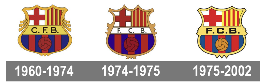초기 바르셀로나 엠블럼은 황금 왕관과 함께 녹색 화환으로 둘러싸인 문장학적 마름모로 구성되었으며, 그 위에 날개가 펼쳐져 있는 검은색 박쥐가 있었습니다. 마름모의 설정은 빨간색, 노란색, 흰색 기하학적 패턴이 특징입니다. 가운데 베지는 4개 부분으로 나누어졌으며 왼쪽 상단과 오른쪽 하단에는 흰색 배경 이미지에 적십자가 있고 오른쪽 상단과 왼쪽 하단에는 빨간색이 있습니다. 그리고 노란색 세로 줄무늬 배열에 따라 엠블럼은 단독으로 사용되거나 굵은 산세리프체로 된 "Foot-Ball Club Barcelona 1899" 헤드라인과 함께 이중 원형 프레임에 포함되었습니다. 오늘날 우리 모두가 알고 있는 상징적인 엠블럼의 첫 번째 해석은 1910년에 제출되었으며 금색 윤곽선이 있는 매끄럽고 화려한 방패가 특징입니다. 방패는 넓은 흰색 배너에 의해 수평으로 두 부분으로 나뉘었으며, 그 위에 검은색 "FCB" 글자가 단순한 산세리프체로 쓰여 있었습니다. 방패의 윗부분은 흰색 바탕에 적십자가 있는 왼쪽 부분과 빨간색과 노란색 세로 줄무늬가 있는 오른쪽 부분으로 구성되어 있습니다. 엠블럼 하단 부분은 빨간색 세로줄 3개와 파란색 4줄로 구성되었습니다. 깔끔하고 단정한 라인의 노란색 축구공이 줄무늬 부분 중앙에 배치되었습니다.